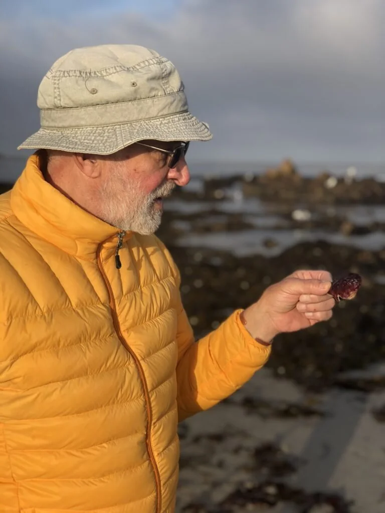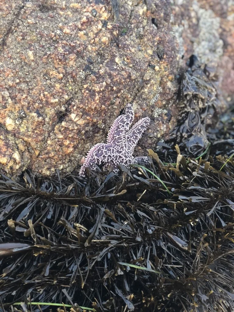 So we got to the beach and left our shoes in his car. We walked down the sandy path onto the beach, down to the water, and over to the tide pool because that is where his walk starts. All of this other stuff is just prep for the walk. I had my phone and was snapping photos of sea anemones and sea stars for which I was scolded. “We came to walk! Not take pictures put that thing away.” (That “thing” is an iPhone.)