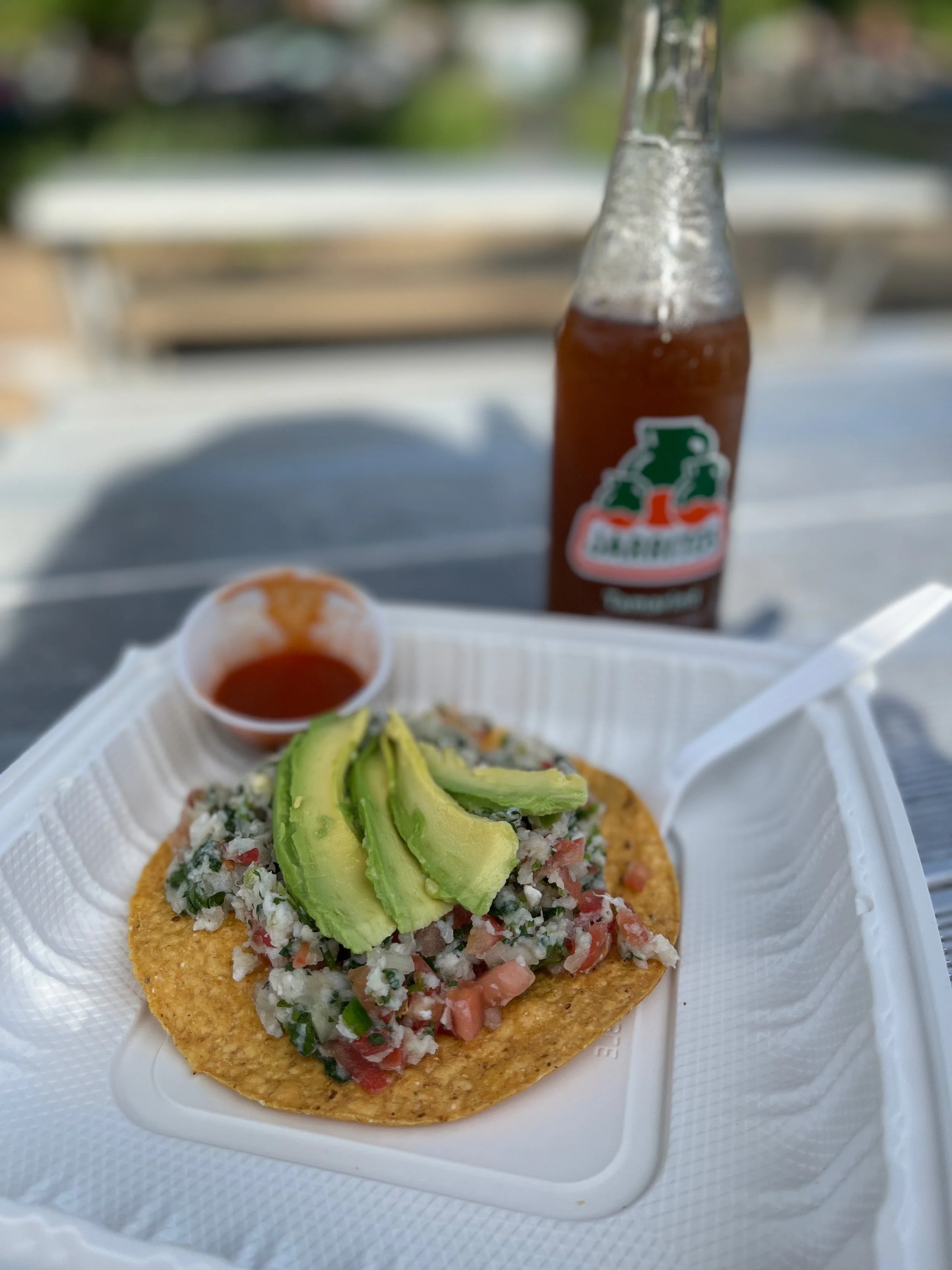 Ceviche tostada from the taco truck at the Safeway parking lot, Guerneville, CA