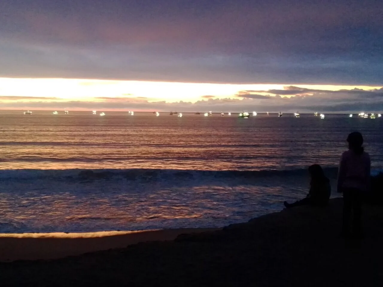 It’s squid season in Monterey. You know it’s squid season because at night the squid boats fill the bay all lit up. The photo above was taken by my Spanish friend Carmen and I asked her if I could use it for this post. She told me the silhouettes in the photo are her two niñas (girls) and she snapped this photo on an evening stroll the other day.