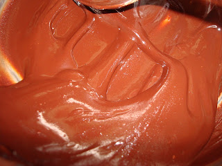 Melt the chocolate in a double boiler and add to the powdered sugar mixture.