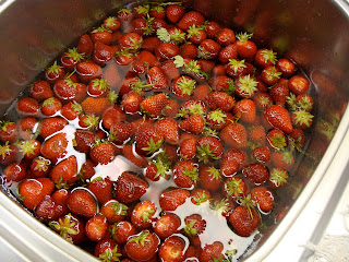We washed, hulled and chopped pounds upon pounds of strawberries.