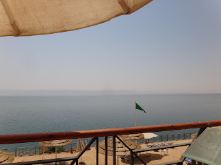 I went down with some friends, a friend of a friend is a Swedish diplomat and was here, in Amman, for my cousin's wedding, he had a conference at a hotel on the Dead Sea and so we hitched a ride with him. We purchased day passes and slowly made our way down to the pool. We found one pool, chock full of children and so we decided to keep going. We found another pool, much smaller but with a view of the Sea (see above) we got pool chairs set up and laid in the 44˚C (~114˚F) heat. It felt amazing. Dry and healing.