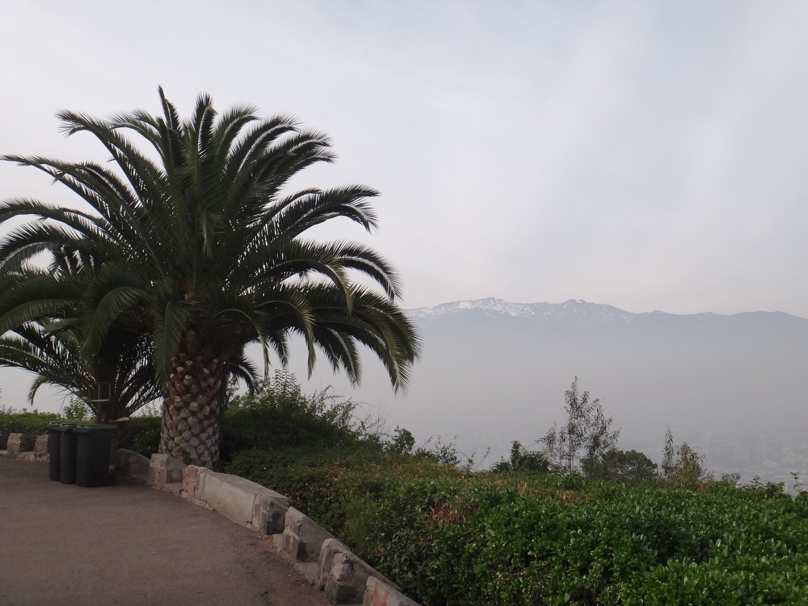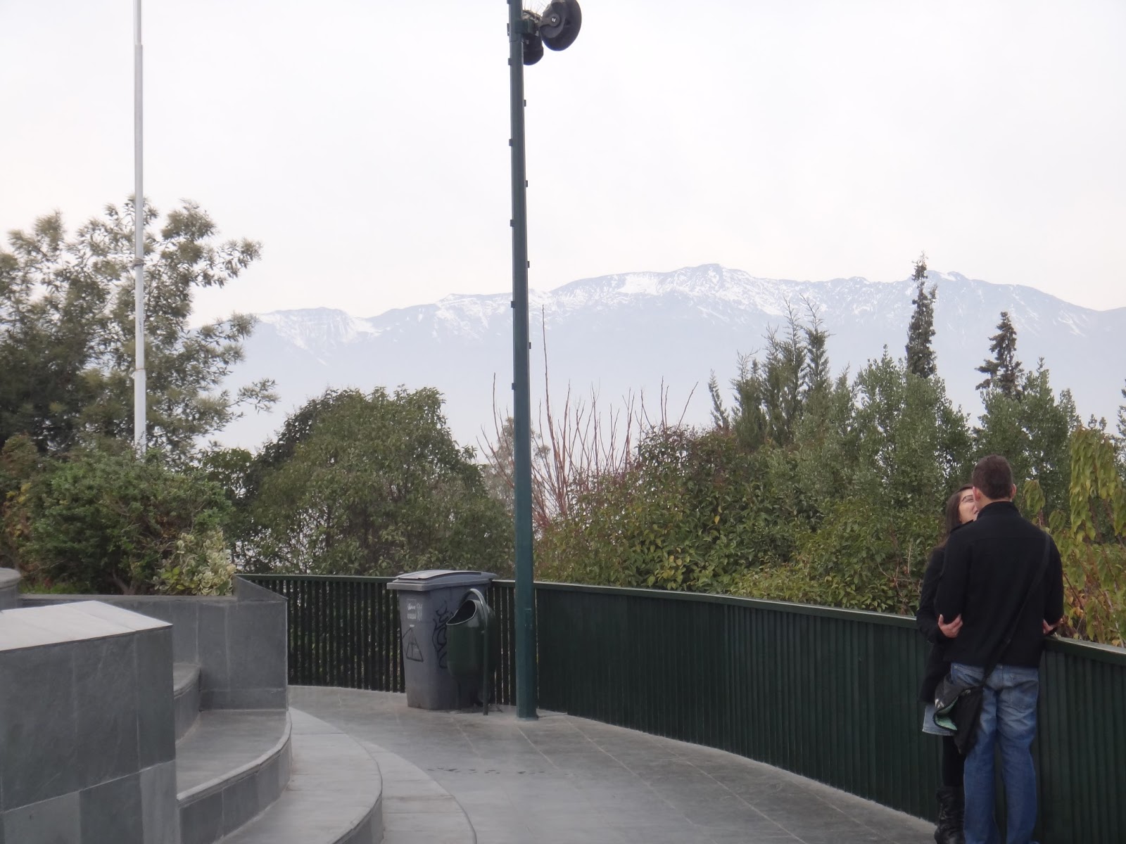 We were looking to get to Cerro San Cristobal, a hill that prides views of the whole city and is home to a huge statue of the Virgen Mary. Walking up the street, we are stopped by tour companies, "HALLO!" We nod and thank them for the 657th time and continue on our way. We reach a park that has an information booth and a castle with "FUNICULAR" written on it. Bingo. The funicular is a 5 car train that goes up about 250 meters to the top of the hill; it works on a pully, the train going down pulls the one coming up, and there's a section in the middle where the tracks split off for them to pass one another. Brilliant! It was so cool! The funicular stops at the middle to drop passengers off at the Zoológico Nacional (National Zoo) and continues on its way. The view from the top is breathtaking, there are snow-covered mountains to our right and the view of the city is spectacular.