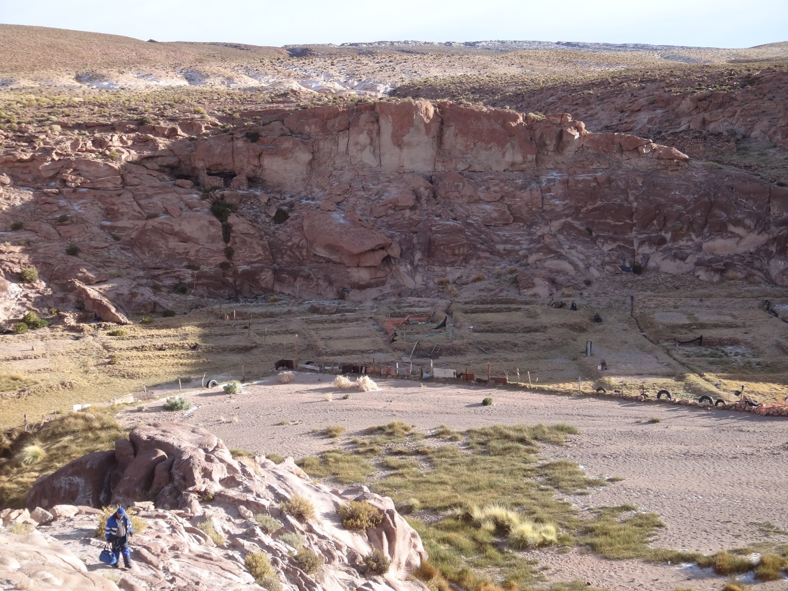 On our way down the snow patches are becoming less and less. It's gorgeous, the adobe colored earth peaking out under a bed of pristine white snow. Gabriel is now laying on the horn. Hm? Maybe it's a one way road and he's notifying people coming up the road of our existence? We pull off onto a dirt road and park. Gabriel grabs a blue gym bag and takes off; we hear him yelling outside. Manuel gets up to explain. Gabriel is Atacameño, a Native American people group of South America. His sister is one of two inhabitants of the village. Whenever he does this route he stops to bring her things from town.