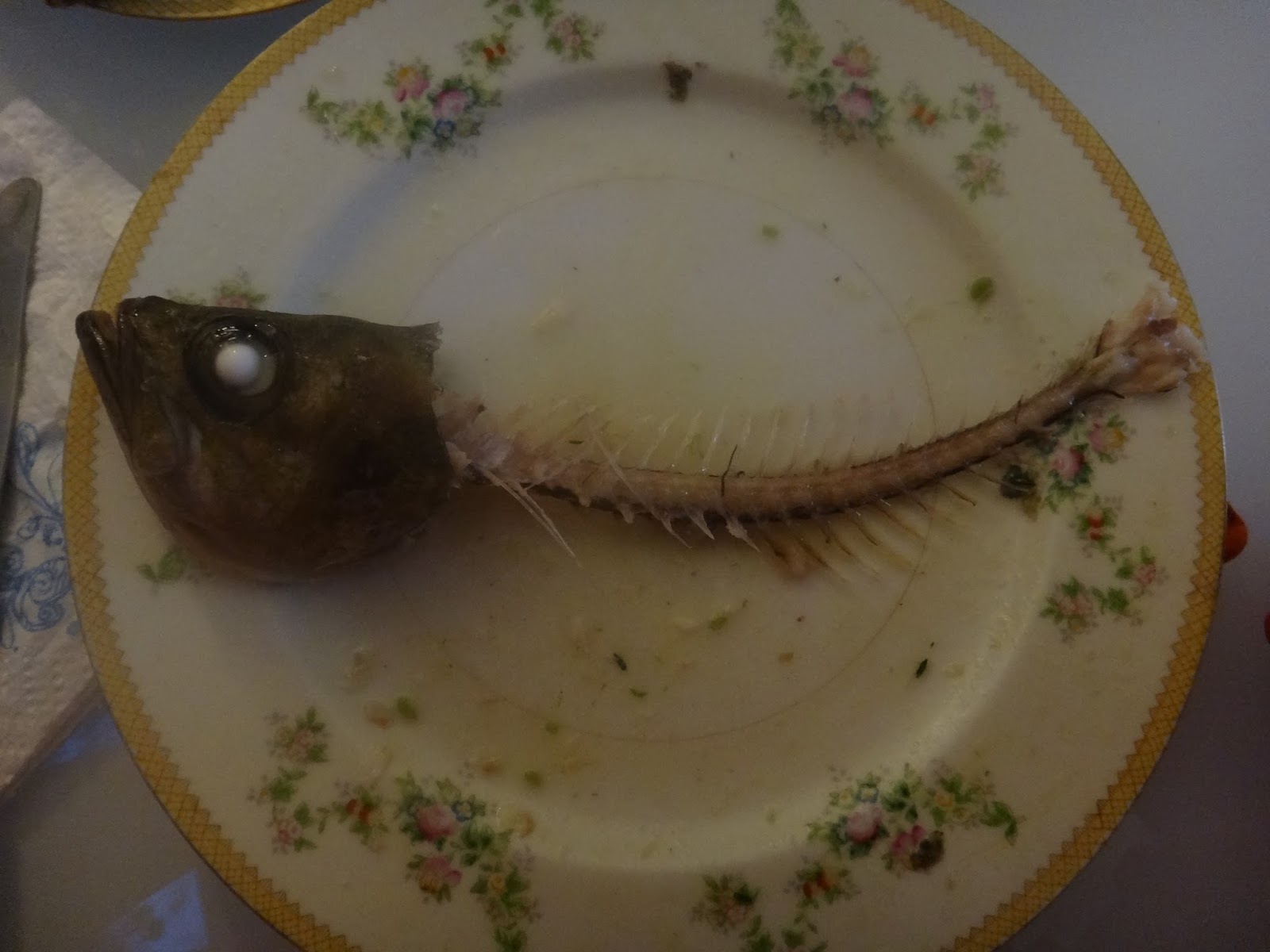 Yesterday on my way home from work I stopped at the Monterey Fish Company (at Wharf #2) to see what was fresh. They had recently caught Monterey Bay Rock Cod, among other fish, but that looked good to me. I bought a couple fish and the nice young guy scaled the fish and gutted them. I asked if I could watch and he showed me how to swiftly and cleanly gut a fish, something I have never done before. It will take several poorly gutted fish before I can do it with his grace. I also bought squid but did not prepare it last night, I'll keep that for another post.