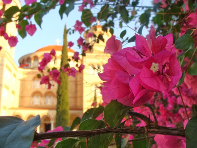 | Bougenvillia in front of the Monastery of St. Nectarios |