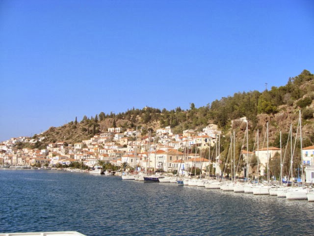We made our way to the Island of Poros - an island with a population of 7000 and here, there are cars. We walked along the dock and watched a little boy, maybe 7 years old learning how to fish with his grandfather. In between casting the line and catching the fish, grandpa was feeding the little boy bites of his sandwich. The boy ate willingly because if he ate, he got to fish more.